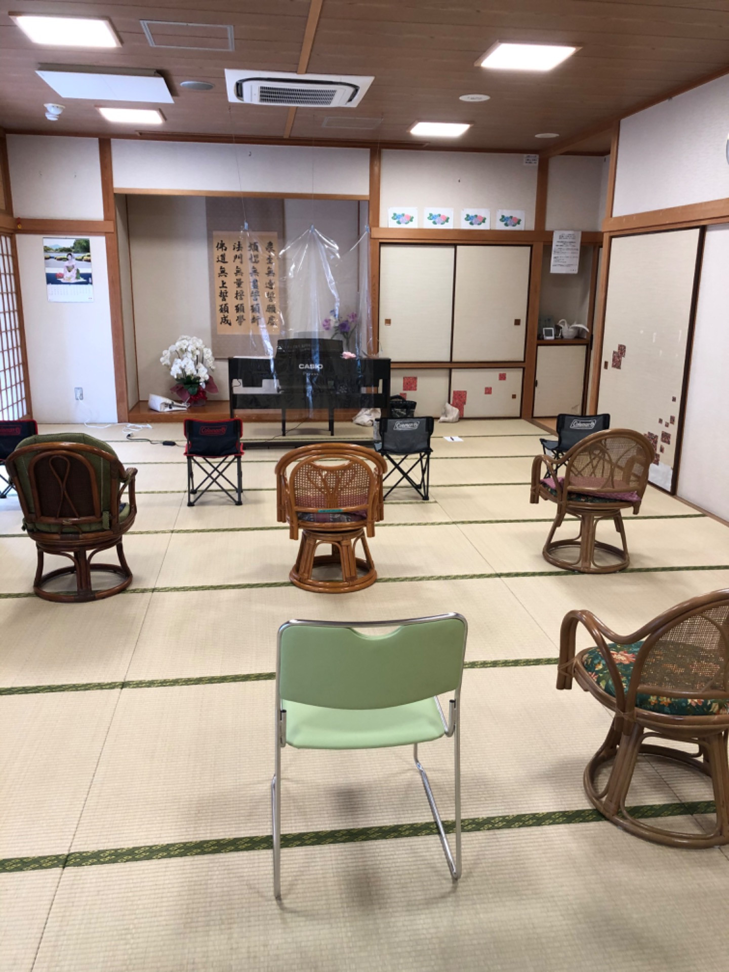 コロナ前は約30名の参加者、区の人が視察に来て部屋のマックスの人数が14名になったため、クラスを前半と後半に分け、日頃2時間のレッスンを各45分ずつに。
