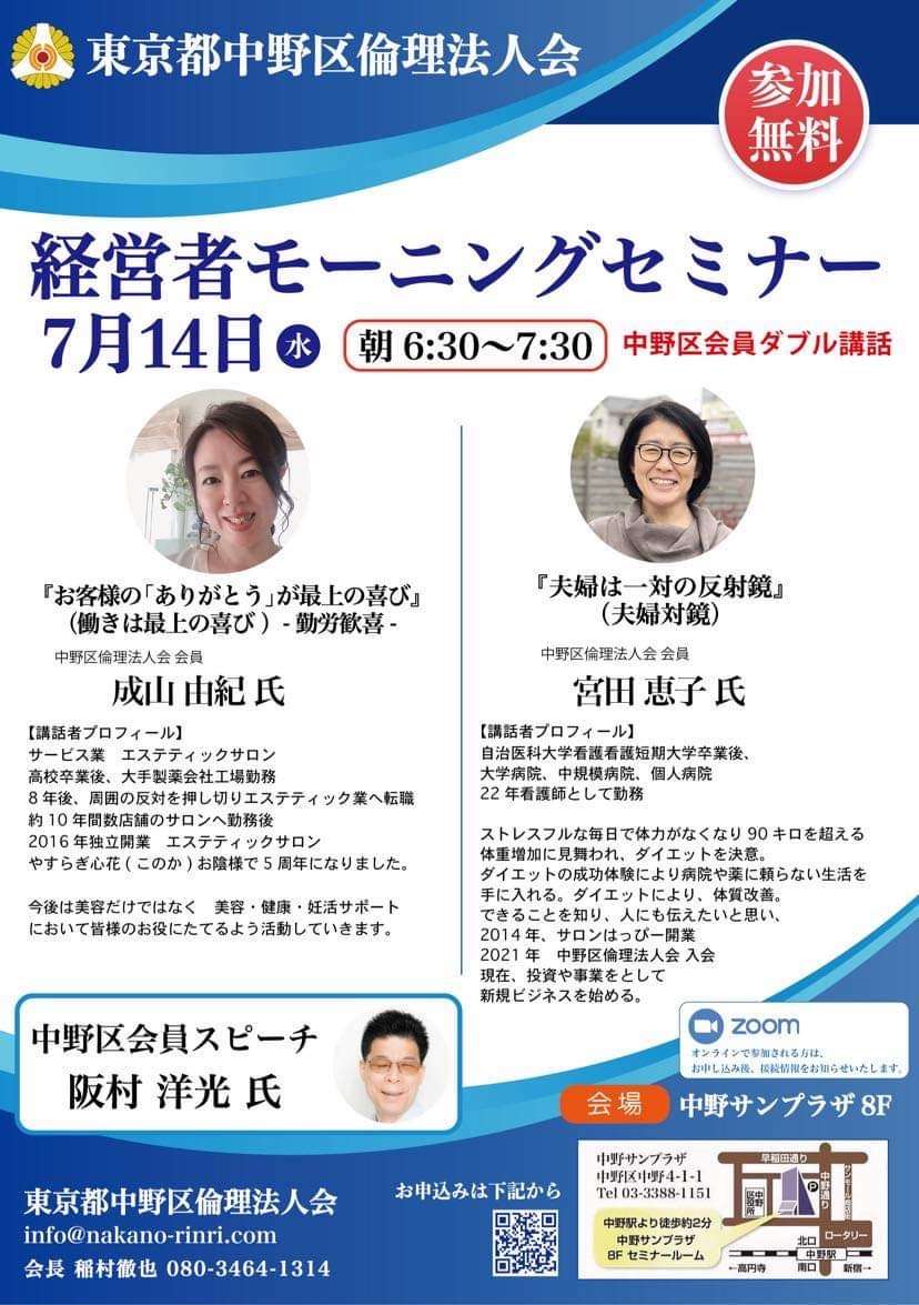 エステティシャンの友人と、体質改善のサロンを経営する友人が倫理法人会で講話をしてくれた。