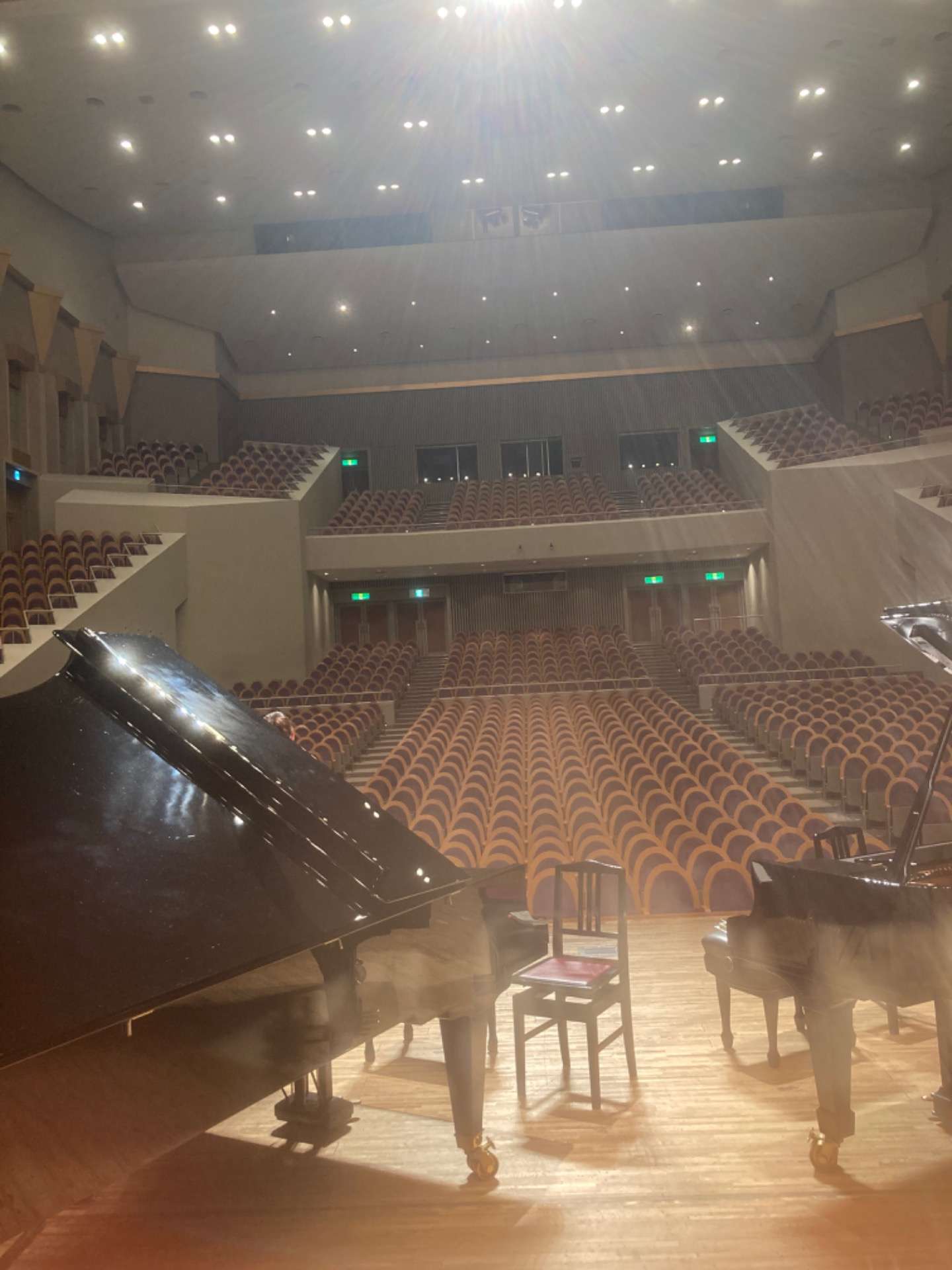 大ホールをふたりじめ🎵 2022/01/29 和光市にあるサンアゼリアという1.200席ほどのホールの、大ホールでベーゼンドルファー、スタインウェイを楽しんでみよう!という企画。 ベーゼンドルファーインペリアルで歌いたい!という生徒さんの熱い思いで昨年よりたびたび使わせていただき、今日で4回目❣️ オミクロンの広がりも影響し、最終的に彼女と2人で1時間45分歌い放題🎵 大ホールでレッスンなんて、なんと贅沢な時間♡♡♡