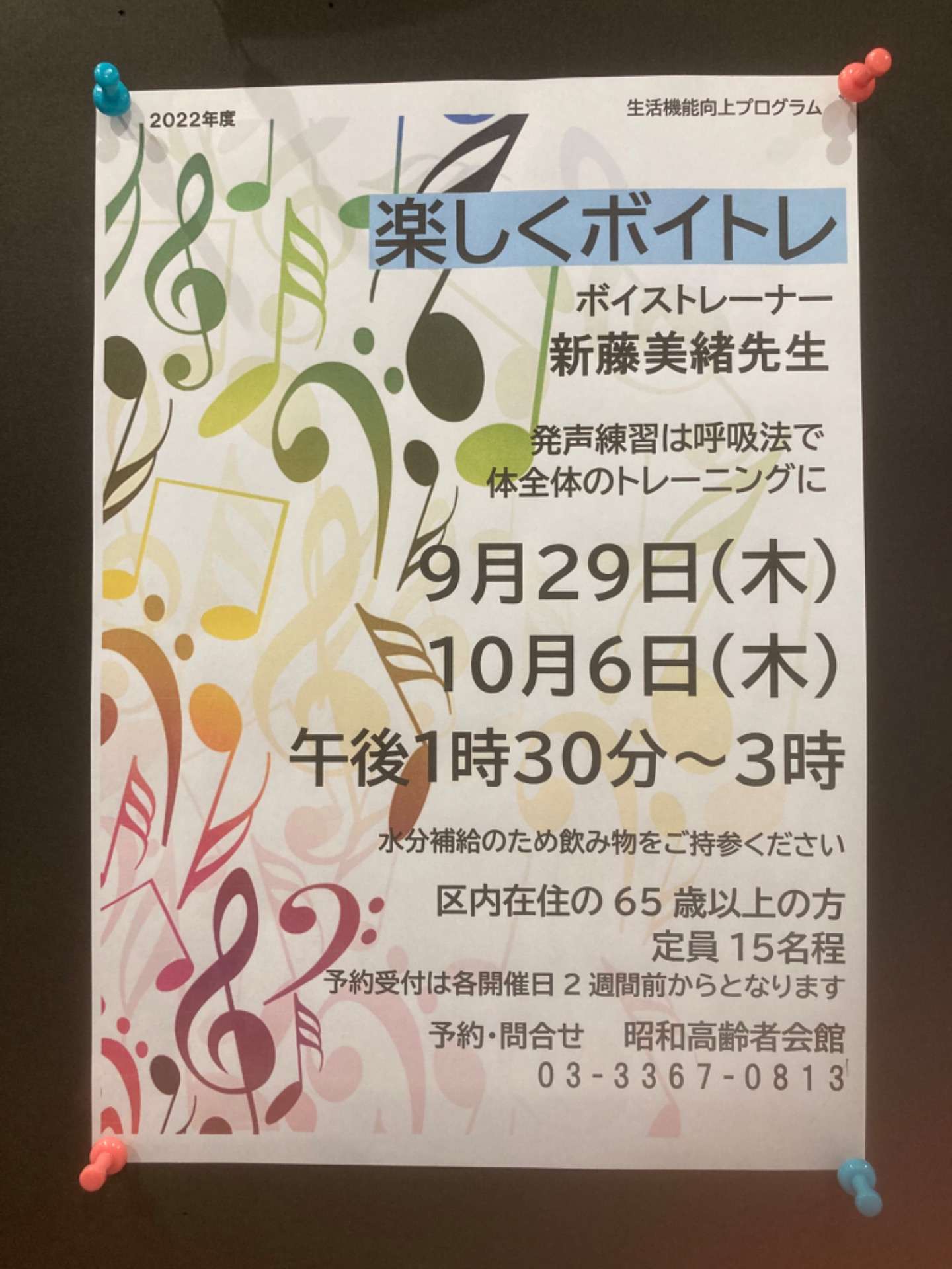 おかげさまで少しずつ広がり、単発でもたまに声をかけていただき、今日は初めての昭和高齢者会館にてレッスンさせていただきました。