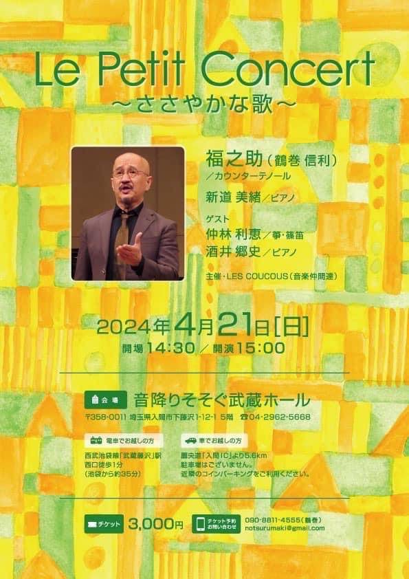 カウンターテノールの鶴巻信利さんと共演します。 2024/03/20 4月はカウンターテノールの鶴巻信利さんのソロコンサートに共演します。 今回は私はピアノに徹します。 プログラムはフランス歌曲を中心とした、とても美しい曲の数々♪♪技術が足りないことに歯がゆい思いをしていますが、あとひと月、世界観を少しでも表現できるよう励みます。 場所は少し遠いですが、音響もピアノも素晴らしい「音降りそそぐ武蔵ホール」です✨ 名前が素敵ですよね♡